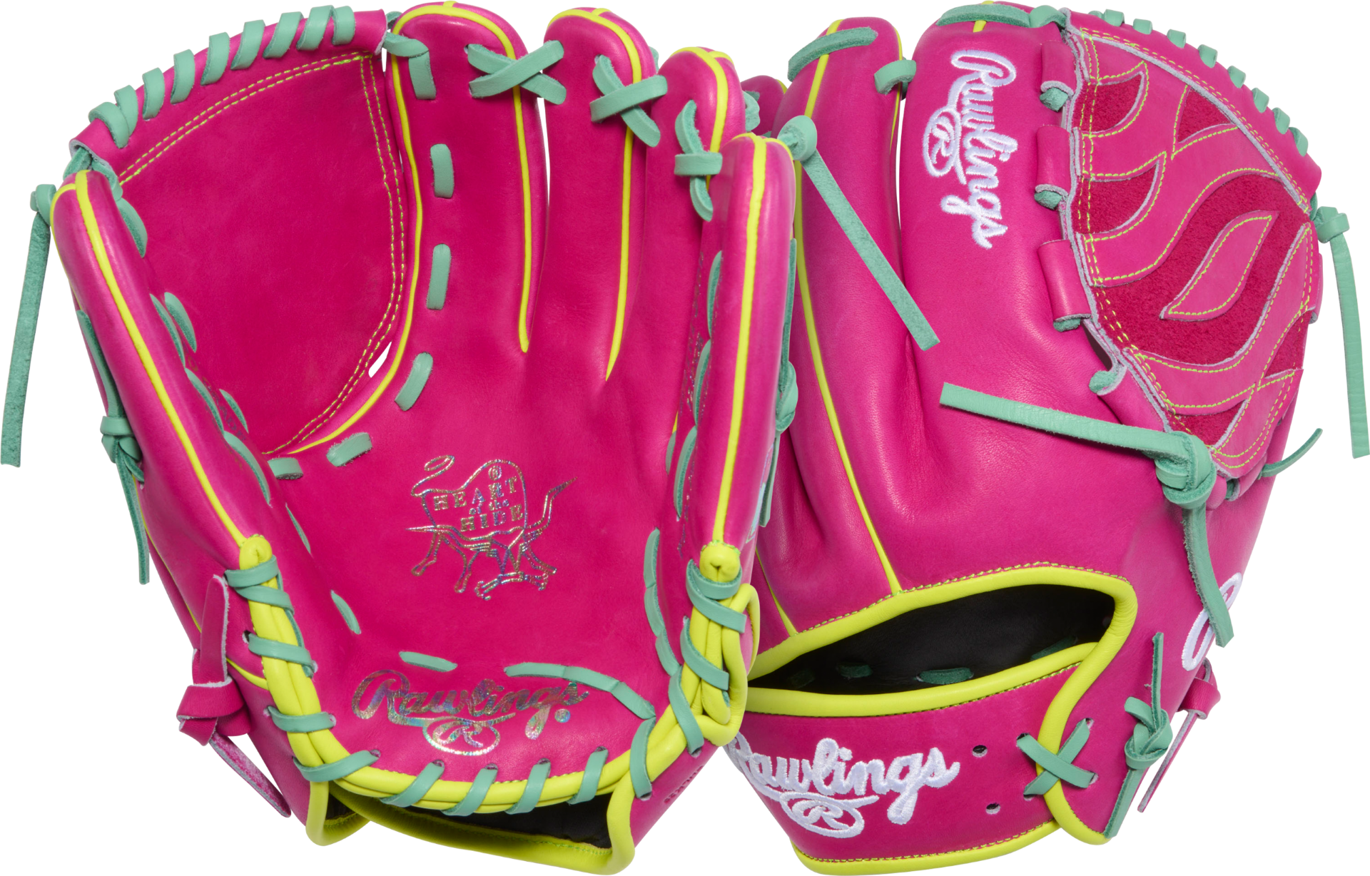 Finished with Rawlings script logos and unique chromatic foil stamping, this glove gives off a different kind of metallic glow to the stamped details—performance and style, perfected.